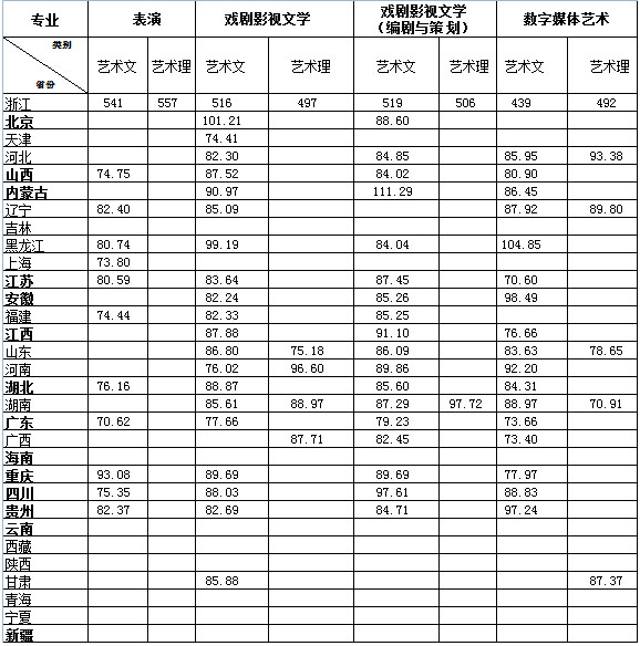 2015年浙江传媒学院艺术类专业录取分数线