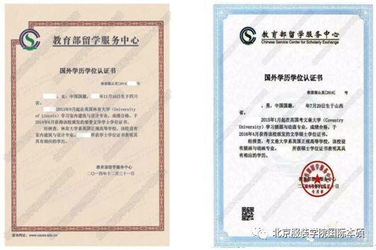 学生被授予的学士学位及硕士学位与国外大学本土学生颁发的学位无差别。教育部按照境外文凭认证注册制度给予认证,学位学历完整,学士学位认证为本科学历,硕士学位认证为硕士研究生学历。毕业生可办理留学人员回国工作就业报到证,享受海外高层次人才待遇,并根据北京、上海、广州等一线城市留学归国相关条例享受落户和其他优惠政策。