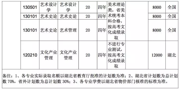 2017年湖北美术学院本科招生计划