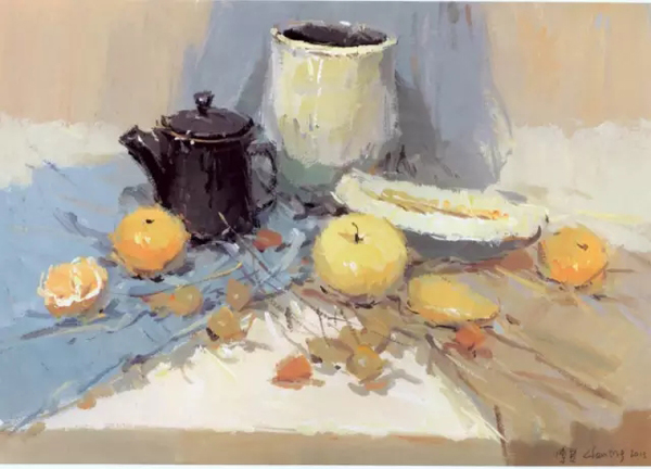 我们虽然强调固有色,但几乎画面每个色区都要表现冷暖关系,冷暖是色彩的独特表现手法。
