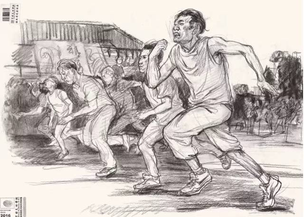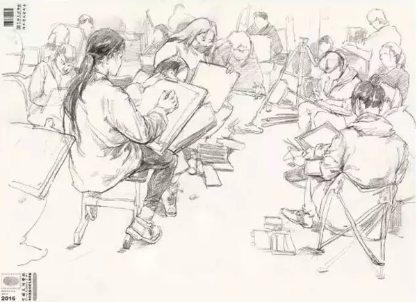 场景速写中所指的动态是画面中单个或组合人物的动作形态。由于场景速写主要对象是活动着的众多人物,众人的动作随时发生着不同的变化,人物之间的互动和对生活细节的表现十分重要,可以使画面更具艺术感染力。