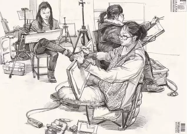 场景速写的测试无疑压缩了我们对单人速写的训练时间。要将:动态与人体结构研究、大动态训练、头手脚训练、衣纹的组织和穿 插关系训练、站坐蹲训练、单人各种动态默写等知识点熟练掌握。时间紧迫,提高学习效率和加大训练量显得非常重要。你只有吃透了单人速写,才能过渡到场景速 写的训练。