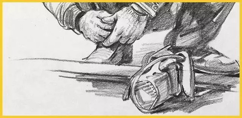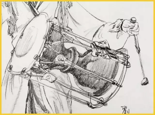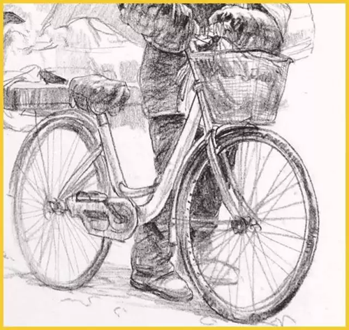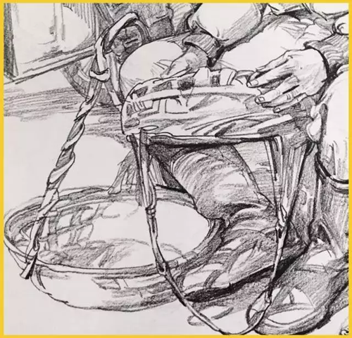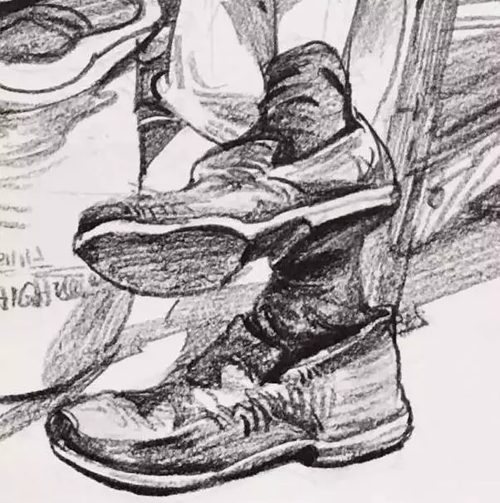 道具:道具的刻画表现,是根据物体最有代表性的取舍,详细或者简单根据大家画面所需求表现。但在单人速写中加入道具之后,表现的难度就加倍了。在构图的过程中要思考人物与物体之间的比例大小,以及他们之间的关系,学会从不同的角度分析、观察、理解和表现对象。