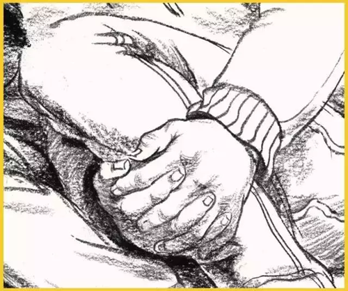 画手要把握好胳膊、手腕及手三者间的转折、屈伸的节奏关系,勾画出手部的特有感觉。可以头部作为参照画出手臂,通过与头部的比较,来确定手的位置、大小,但要注意手与头部的呼应。