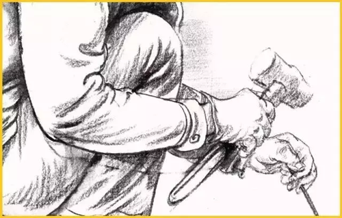 手部:手在具体人物中的应用,就要根据模特的动作来具体刻画了,这个时候更加要求我们理解手部的关节变化。