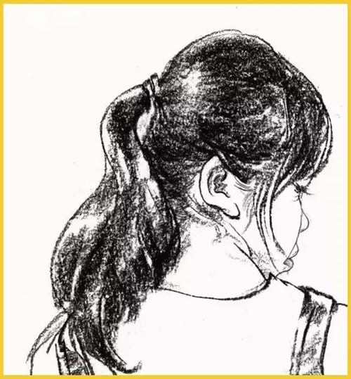 头发:由于头发质感柔顺,生长的位置不一样,头骨的形状起伏,所以画头发要分好组,一组一组的画出大面积的转折关系,用笔要松动轻盈。
