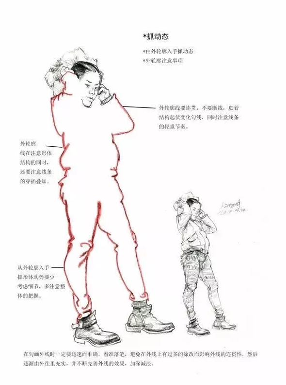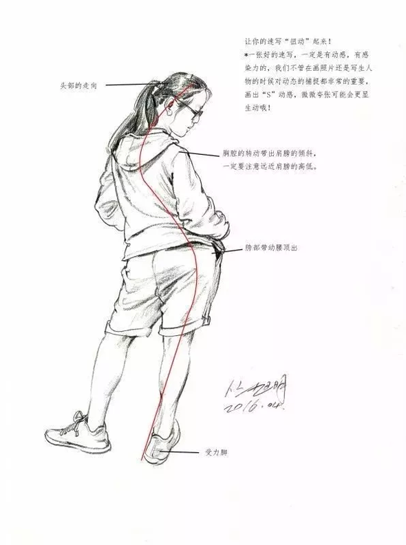 动态可以概括成两点:躯干与四肢。速写不像素描,动作不僵硬人物才算是画活了,画的时候注意躯干四肢之间的动态曲线。