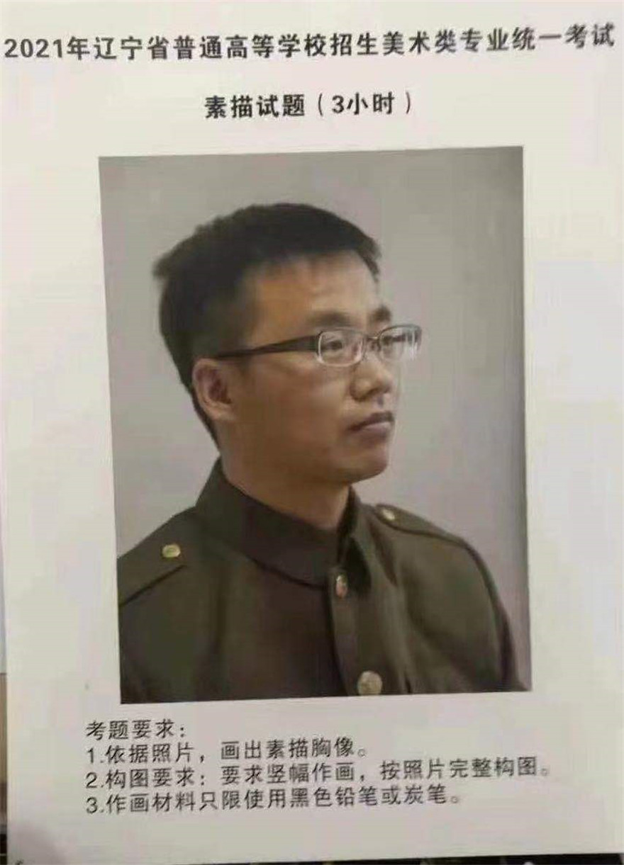素描考题:照片模拟写生,戴眼镜的军人胸像,具体如下图: