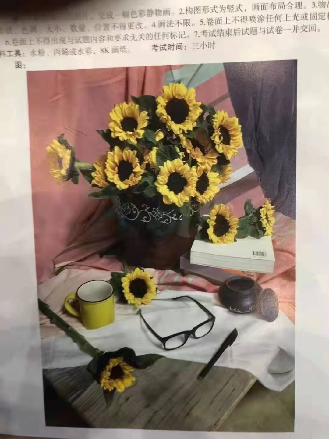 色彩考试题目:静物组合,照片模拟写生,考试内容如下图: