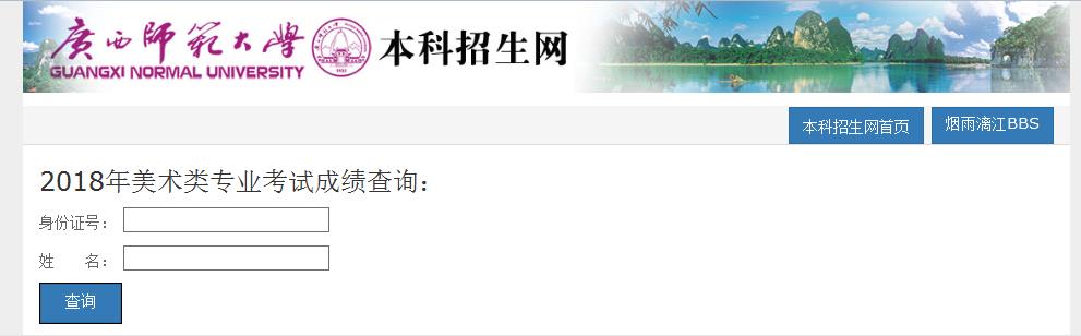 广西师范大学2018年美术类专业考试成绩查询网址:http://bkzs.gxnu.edu.cn/pg/query/meishu_query.php