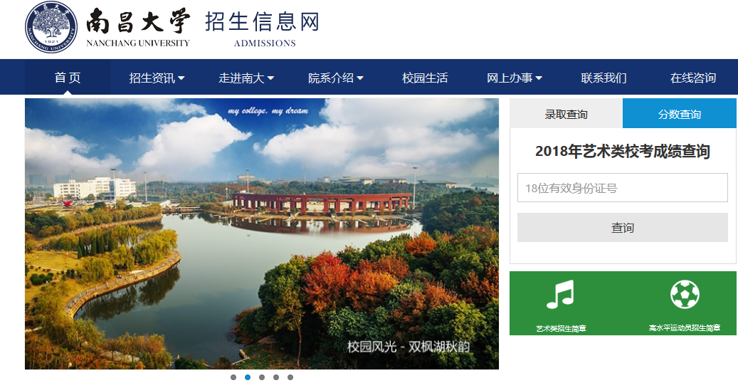 南昌大学2018年艺术类校考成绩查询已开通,成绩查询入口:http://zjc.ncu.edu.cn/zs/