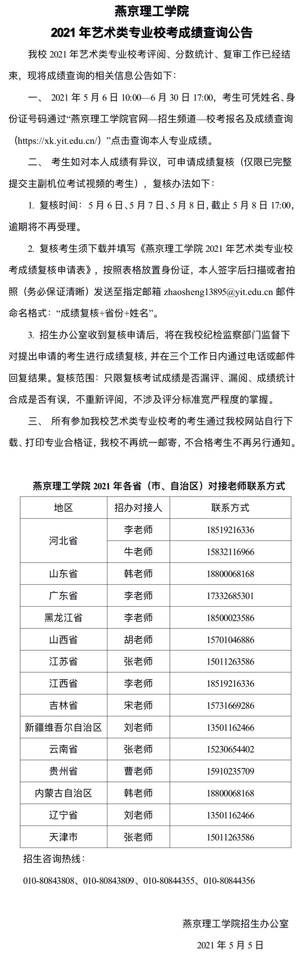 附件:燕京理工2021年艺术类专业校考成绩复核申请表.pdf