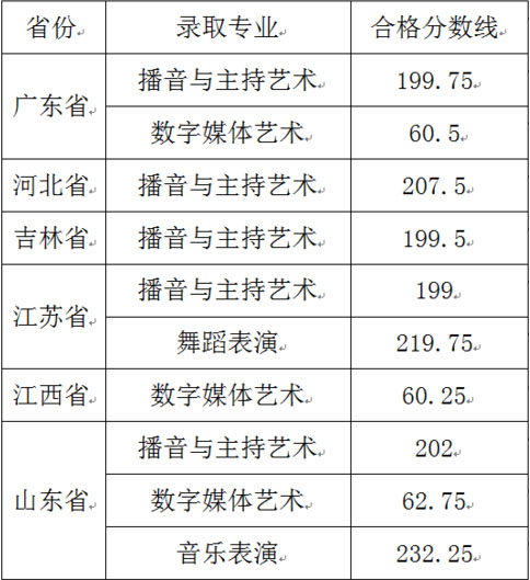 二、各省艺术类专业合格分数线