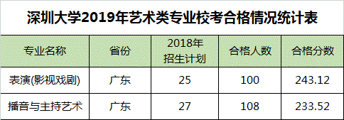 各省美术高考分站深圳大学2019年艺术类校考合格分数线