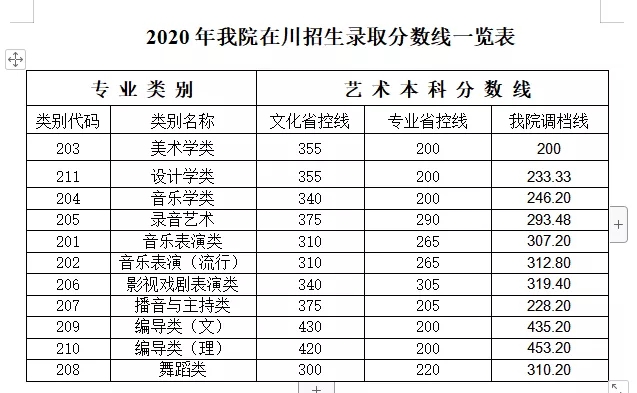 四川传媒学院2020年在省外艺术类本科专业录取分数线(暂未公布)