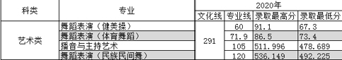 舞蹈表演(民族民间舞)专业,专业成绩使用河北省舞蹈类专业统考成绩。在考生文化成绩和艺术专业成绩均达到河北省相应批次、科类最低录取控制分数线,并符合河北省相关招生要求的情况下,执行河北省艺术类相应专业平行志愿投档规则,在已投档范围内,按照“分数优先,遵循志愿”原则,依据综合成绩从高到低的顺序录取。若考生综合成绩相同,依次比较高考文化总成绩(含政策性加分)、语文成绩、数学成绩、外语成绩。综合成绩计算公式为:综合成绩=高考文化总成绩(含政策性加分)×0.3+(专业成绩÷专业满分)×750×0.7,结果四舍五入保留3位小数。