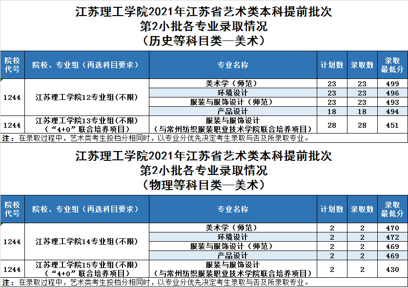 江苏理工学院2021年省外艺术类本科专业录取分数线(暂未公布)