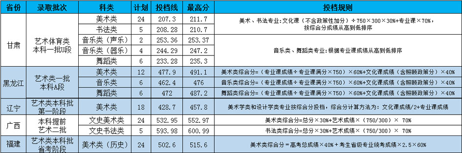 长沙师范学院2021年艺术类投档分数线(7月16日更新)