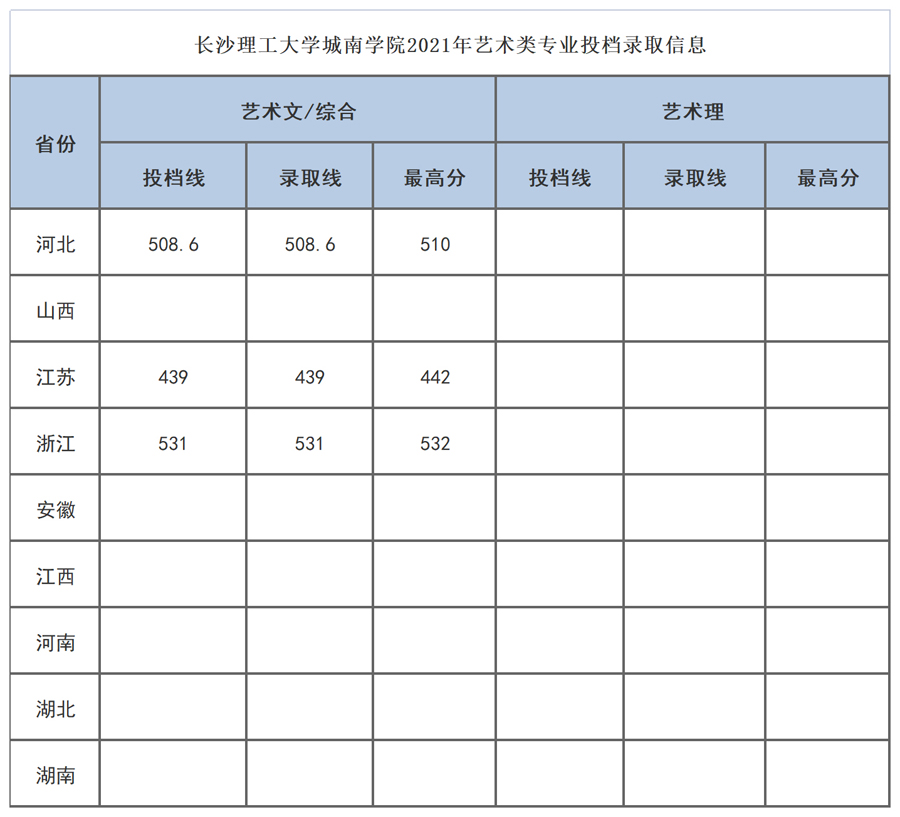 各省美术高考分站长沙理工大学城南学院2021年美术类专业投档录取分数线(7月22号更新)