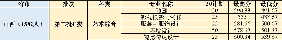 中南林业科技大学涉外学院2020年湖南省艺术类本科专业录取分数线