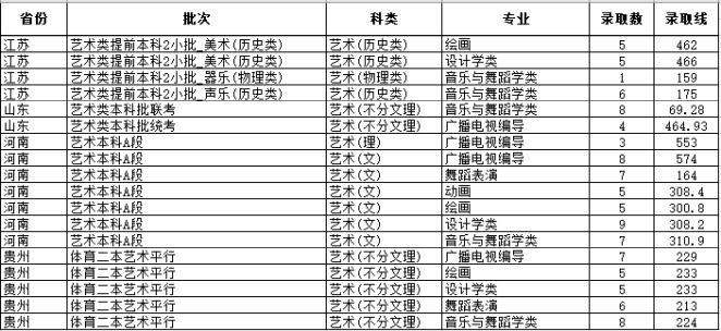 湖北文理学院2021年艺术类本科专业录取分数线(7月28日更新)