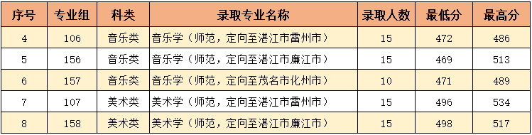 岭南师范学院2021年教师专项艺术类本科专业录取分数线