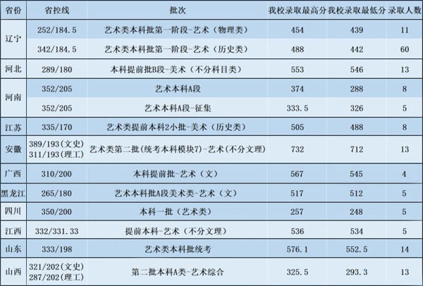 沈阳航空航天大学2021年美术与设计类专业录取分数线