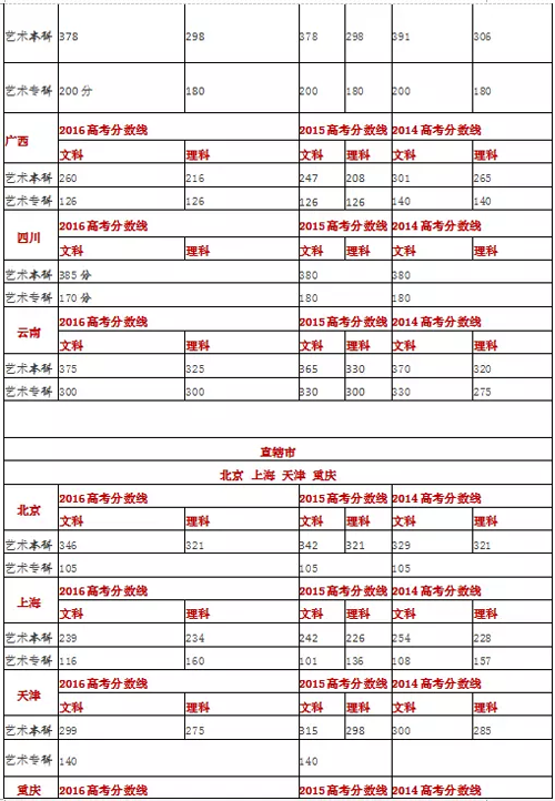注:艺术类第一批中,教育部批准的可自主划线的独立设置本科艺术院校和清华大学等15所高校的艺术类本科专业,由学校自主划定艺术类文化分数线;其他高校艺术类本科专业要求考生文化成绩(高考总分)须不低于312分。