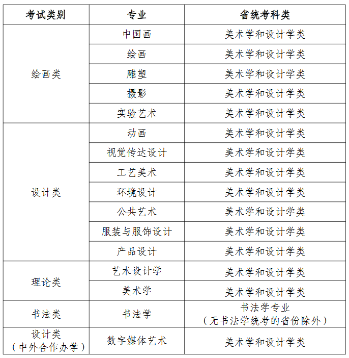 理论类(美术学专业、艺术设计学专业)将不再组织专业考试,考生须省级美术学和设计学类统考合格,按高考文化成绩全国排名录取;