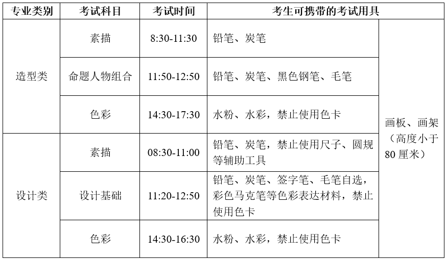 四、所有考试用纸由考点统一提供,考生不得自带纸张(包括空白草稿纸)进入考场,画板(不得有与考试相关的图案或文字)等规定考试用具由考生自备。