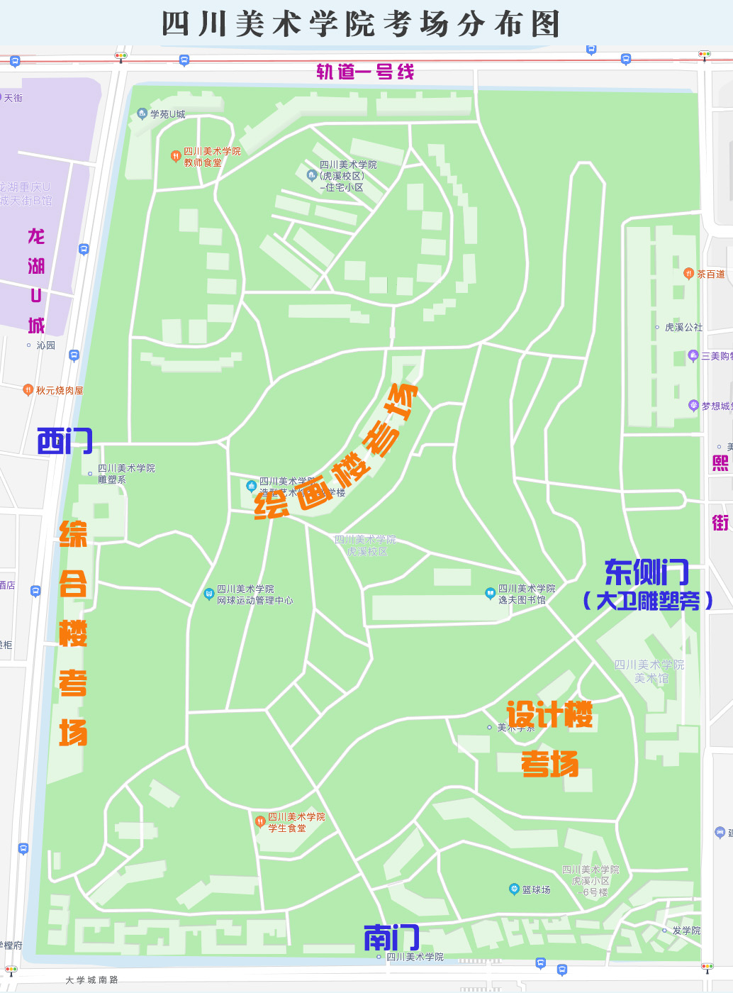 2、考前1小时开始进入考点,在四川美术学院大学城校区东侧门、南门、西门依次排队进入,其它校门不对外开放,考生凭“渝康码”绿码、通信大数据行程卡、准考证进入校园,请考生全面考量考试当天交通状况以及进入考点的防疫检测程序,充分估算到达考场时间,切勿迟到,建议至少提前1小时以上错峰进入考点。