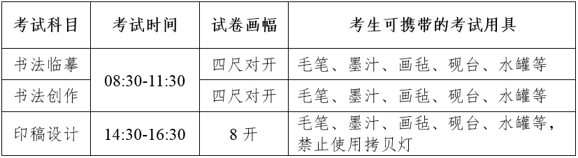 (注:书法临摹和书法创作两个科目考试连续进行,中途不休息。)