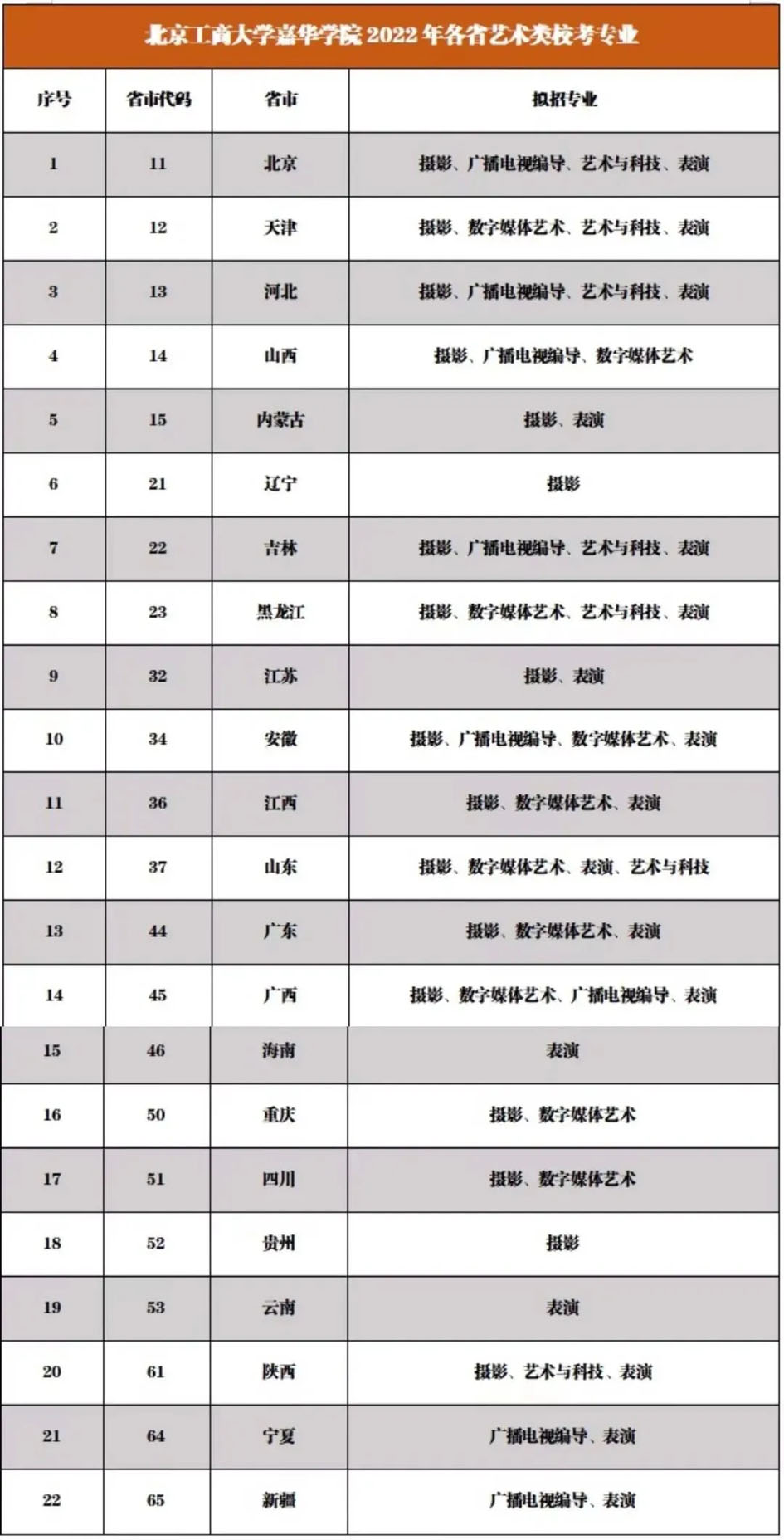 二、2022年各省校考专业