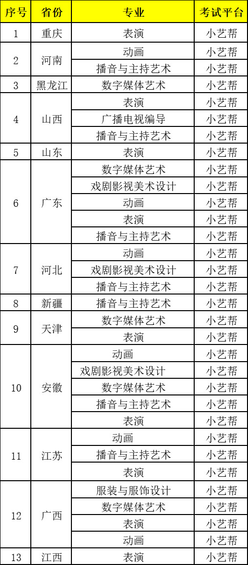 注:各省校考时间请关注学校微信公众号或咨询各省校考负责老师