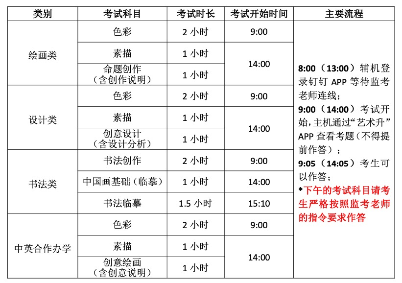 2.考生须自备绘画工具、4开画板及画架、凳子、黑色签字笔、剪刀、胶棒、红色印泥、吹风机、包装试卷工具(详见试卷封装及邮寄要求)等。