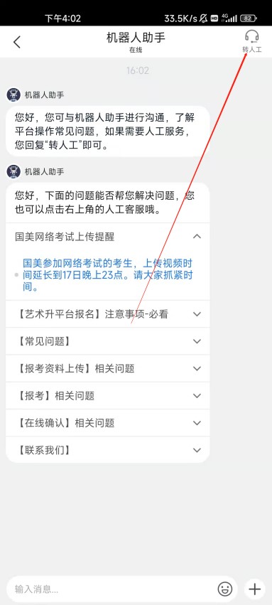 点击艺术升APP报考页面右下角客服--》联系客服--》转人工,考生提供:考生姓名、手机号、身份证号码、邮局无法揽收证明材料、异常通讯大数据行程卡截图、异常健康码截图、延期邮寄简要说明、预计寄出时间。