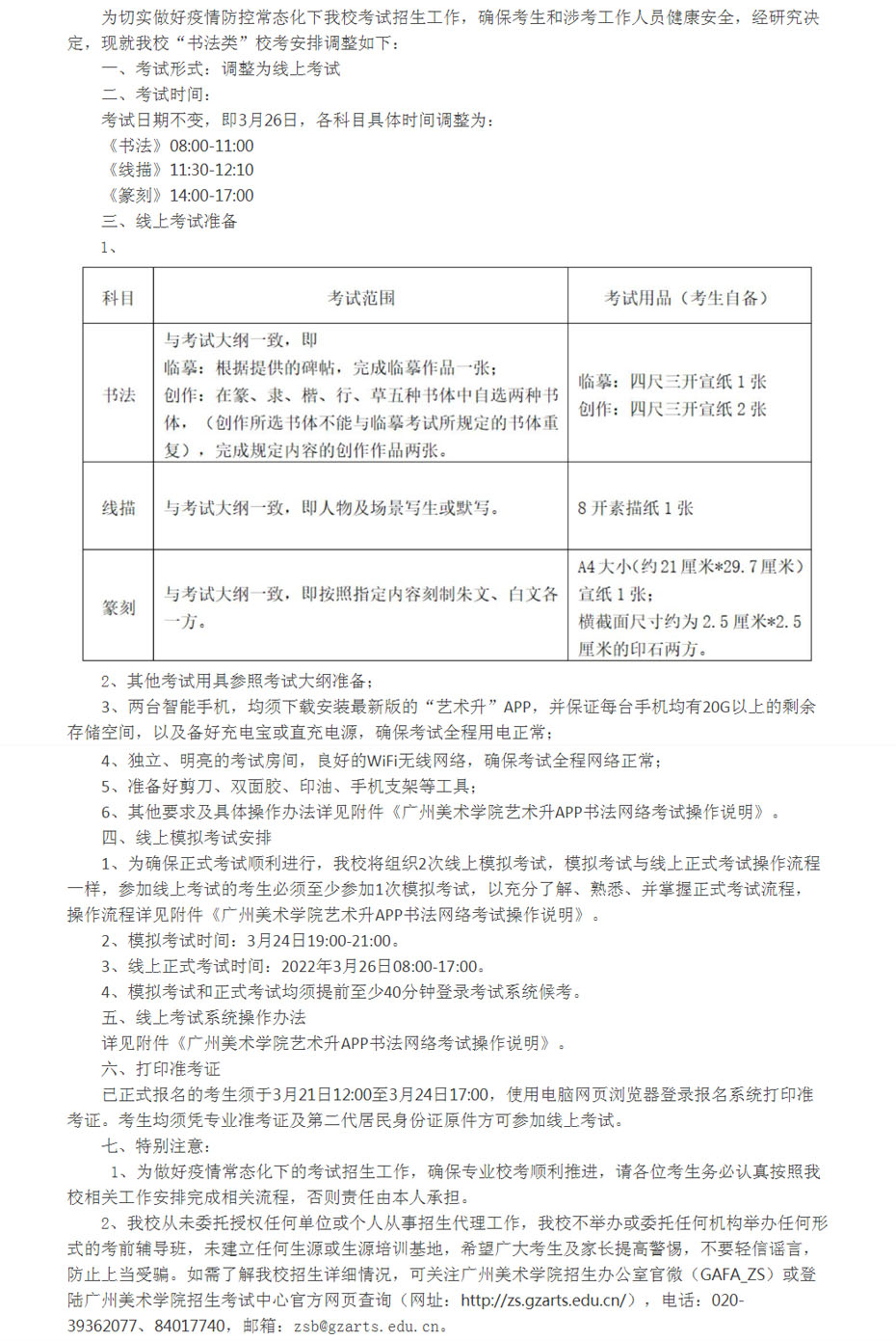 各省美术高考分站广州美术学院2022年书法类校考调整