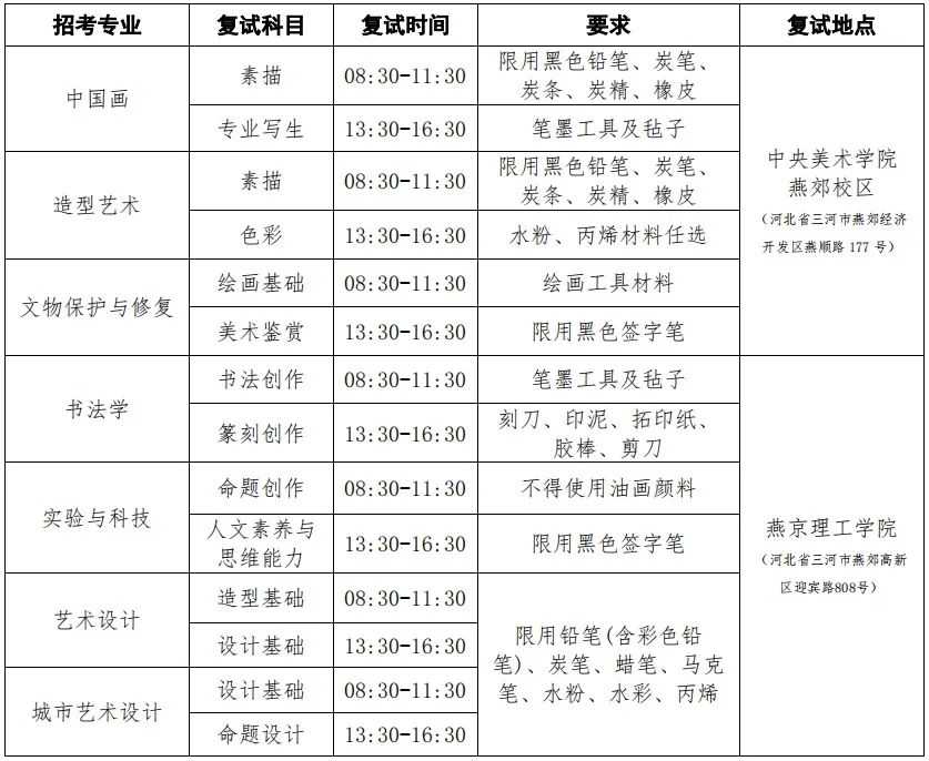 2.考生应严格遵守《中央美术学院2023年本科招生复试考场规则》。