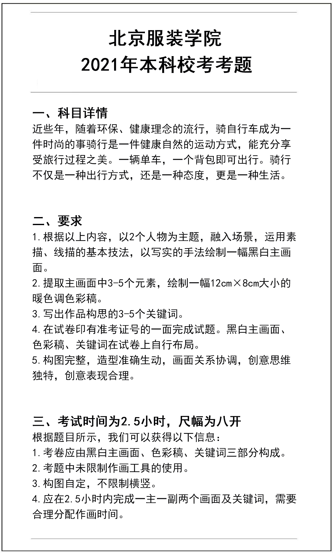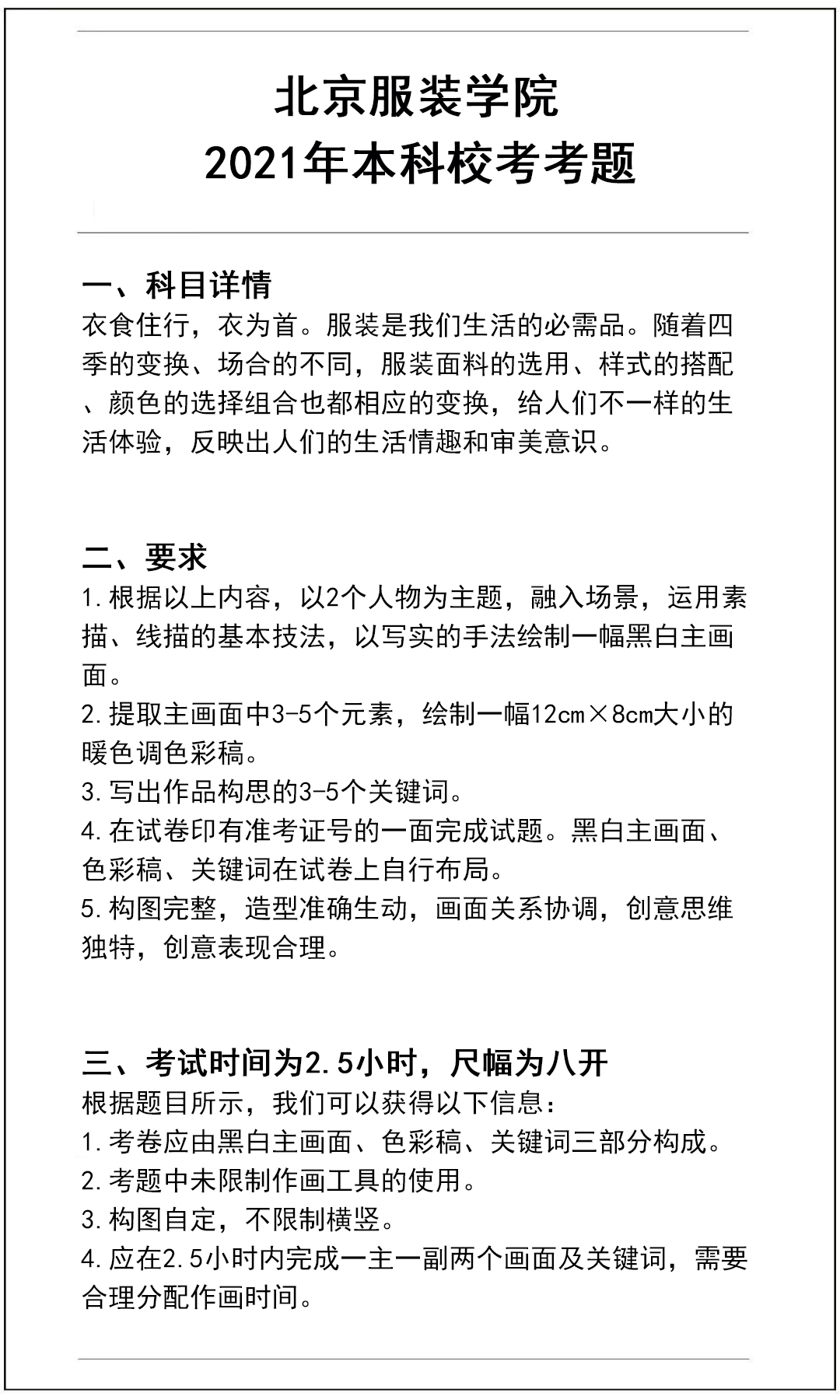 2021年北京服装学院美术类校考考题