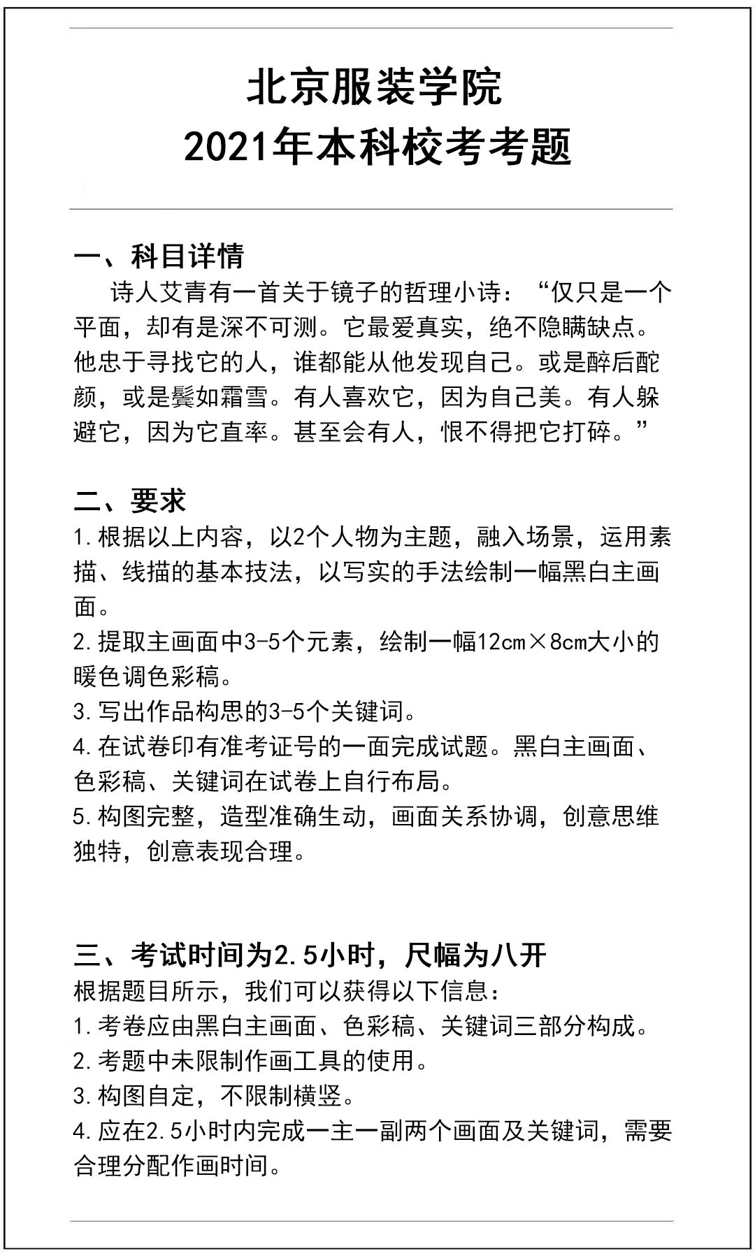 北京服装学院2021年美术校考考题