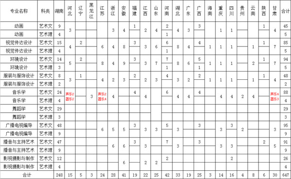 2.部分省份艺术类专业不分文理,其计划数合计时列入艺术文计划数中。