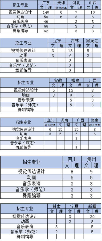 吉林大学珠海学院2020年艺术类本科专业招生计划