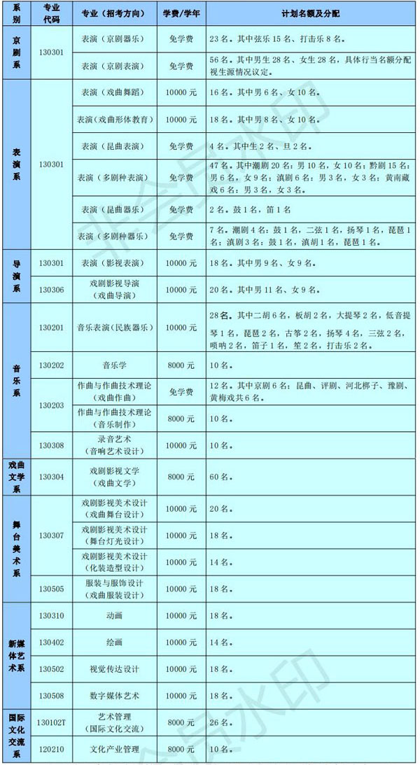 注:戏剧影视文学(戏曲文学)、艺术管理(国际文化交流)按照普通类专业招生,不设 校考。动画、绘画、视觉传达设计、数字媒体艺术专业不设校考,使用省美术及设计类统考成 绩录取。文化产业管理专业为普通类专业,不设校考。以上各专业具体分省计划以各省教育考 试院公布的文件为准。