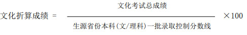 ③在计算综合成绩和文化折算成绩时,对于艺术类文化考试满分值与普通类文化考试满分值不同的省份,将对考生文化考试总成绩按普通类文化考试满分值进行折算。