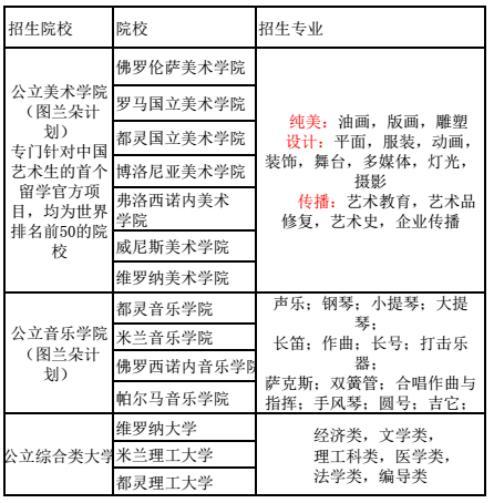 ——意大利图兰朵计划(公立美术学院、公立音乐学院)、