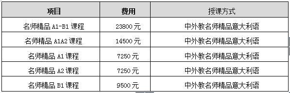 本项目意大利语课程部分由权威意语教授、精英海归名校硕士讲师授课,教学教材使用《新视线意大利语》、《大学意大利语》, 采用小班教学,.统一在本校组织意大利使馆认可的相当于意大利语A2或B1级别的考试后,学员在申请拿到签证后需要继续在意大利大学进行统一的10个月的语言培训,并要求达到欧盟的意大利语B2水平后才可以进入所申请的意大利大学,美术学院或音乐学院的专业课程进行学习。