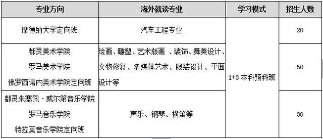 为帮助中国学生更快的适应意大利的学习并更好的进行留学深造,中国传媒大学特开展意大利留学直通车项目。此项目自2006年开办以来,已有上千名学员由此踏上了海外求学之路,学生们经过国内短期语言培训和国外预科学习两个阶段,顺利升入意大利都灵美术学院,佛罗西诺内美术学院,维泰博美术美院,罗马美术美院,维罗纳美术学院,布雷西亚LABA美术学院,佛罗西诺内音乐学院,都灵威尔第音乐学院,特拉莫音乐学院,罗马第二大学,摩德纳大学,米兰理工,都灵理工等意大利名校进行深造。