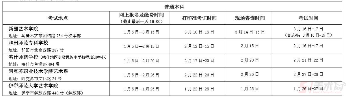 2.内地各省报考时间、地点(我院艺术升网报系统)