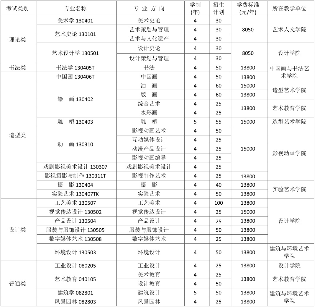 注:①招生专业、计划及收费标准以上级主管部门下达为准;②住宿费每人1200元/年(四人间);③各专业(方向)介绍,请登陆四川美术学院官方网站查询(网址:http://www.scfai.edu.cn/zsb/info/1002/1837.htm)。