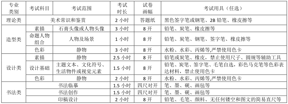 四.造型类、设计类、理论类、书法类专业考试报考要求